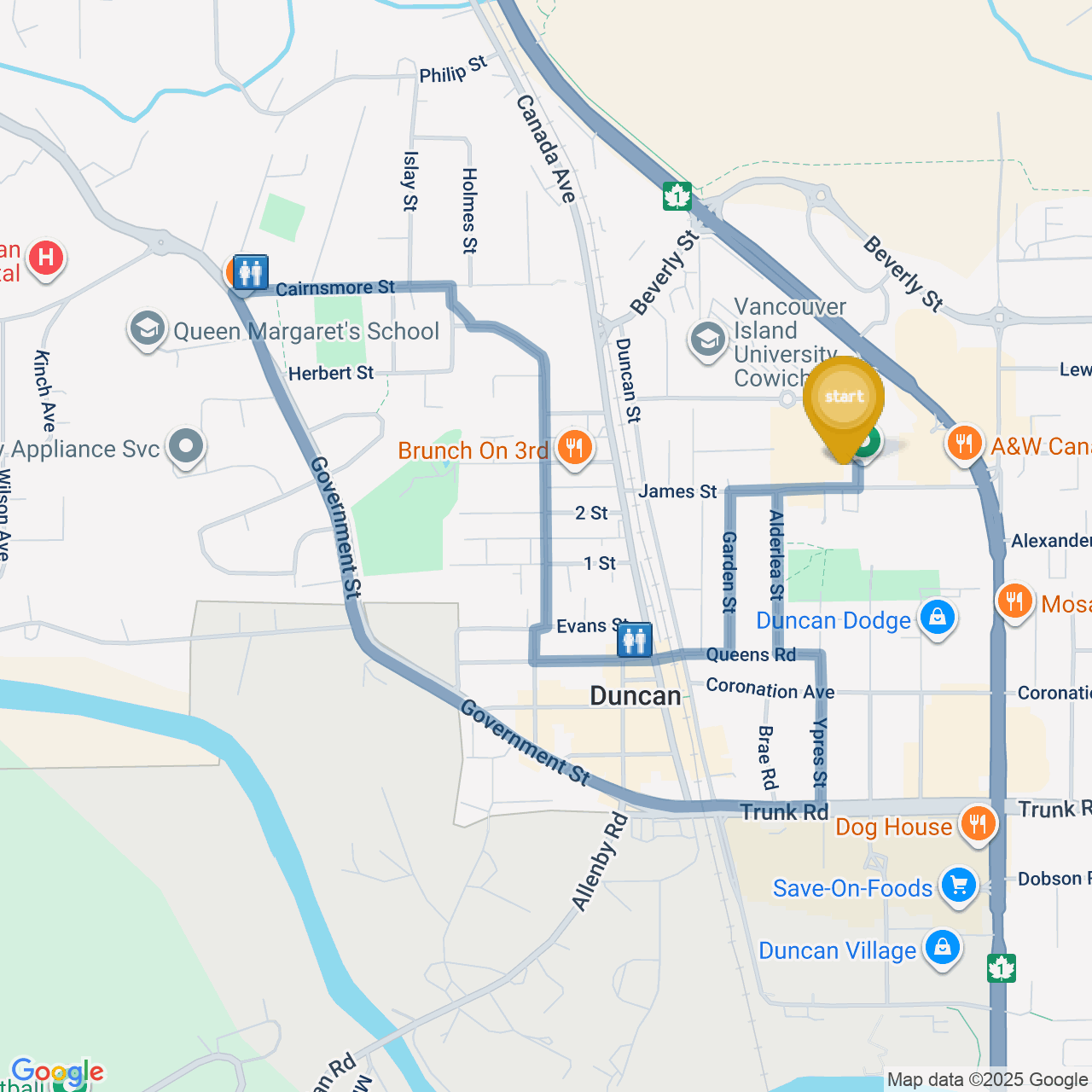 ![]() | Head west on Government St | 1.4 km16 minutes |