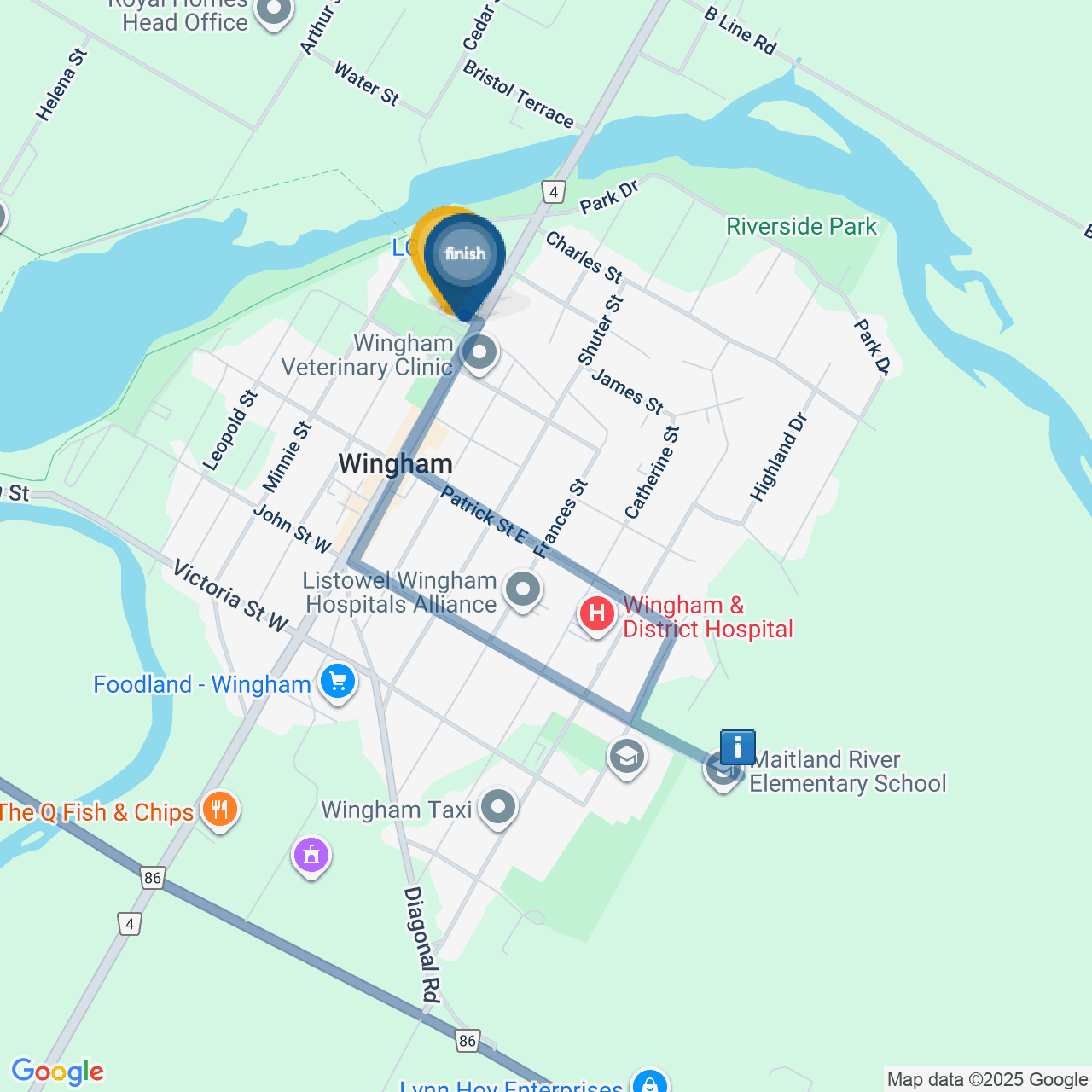 ![]() | Head southwest on Josephine St/London Rd/Huron County Rd 4 | 0.3 km3 minutes |