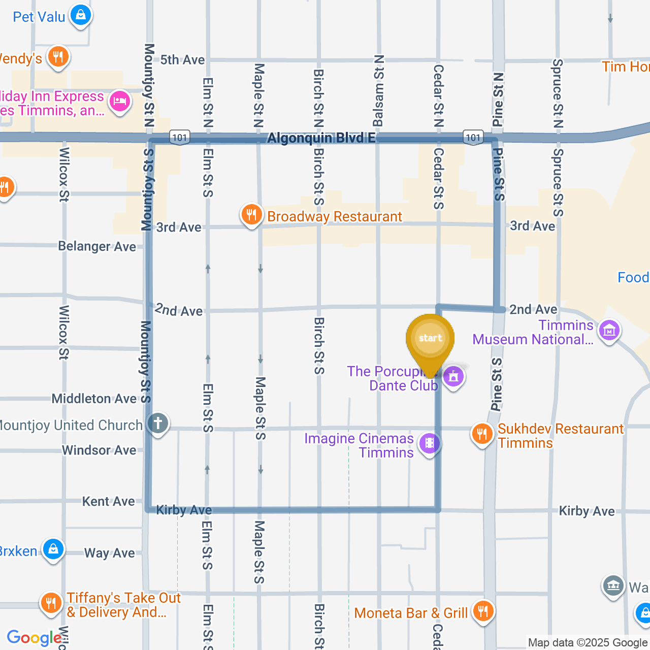![]() | Turn right onto Algonquin Blvd E/ON-101 E | 0.5 km5 minutes |