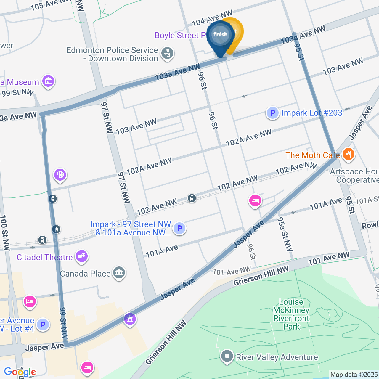 ![]() | Head east on 103a Ave NW | 0.3 km3 minutes |