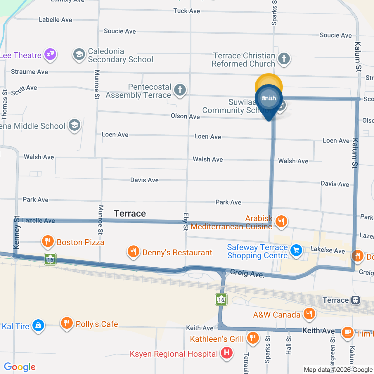 ![]() | Turn right onto Kalum St | 0.1 km1 minute |