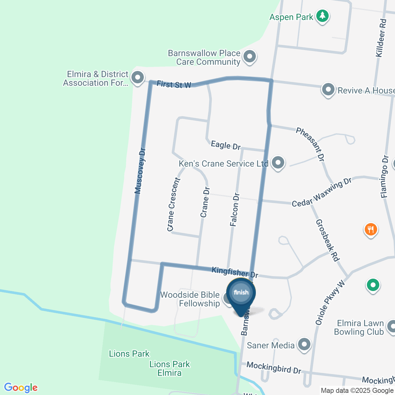 ![]() | Head east on Kingfisher Dr | 0.3 km3 minutes |