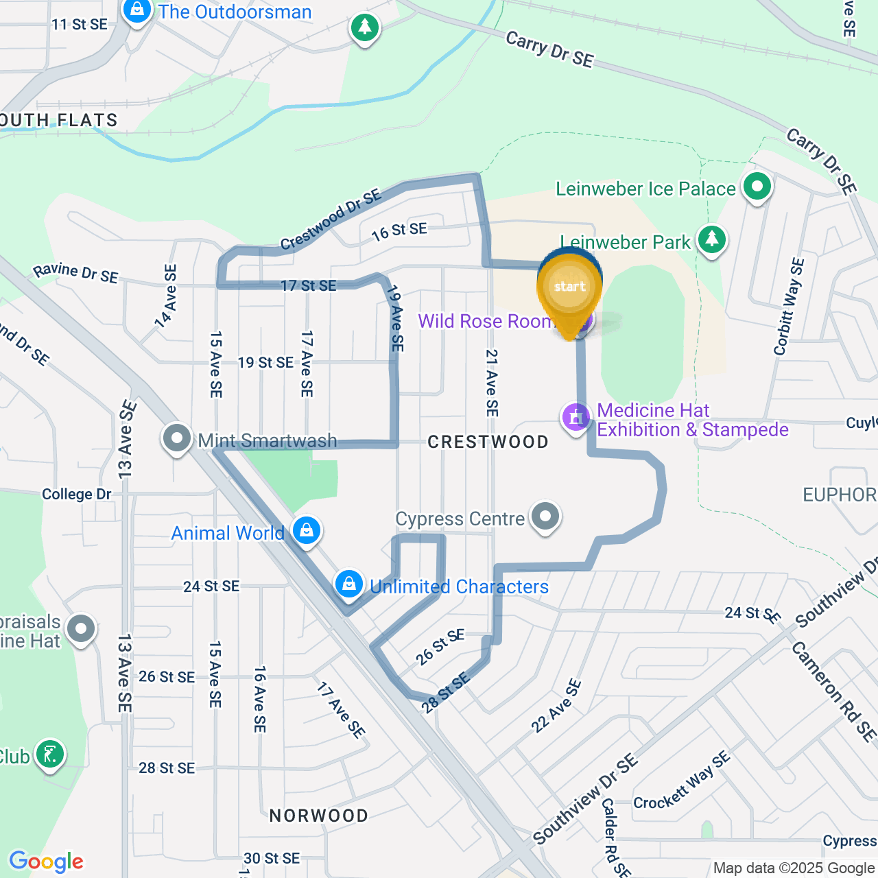 ![]() | Head southwest on 17 St SE | 0.4 km4 minutes |
