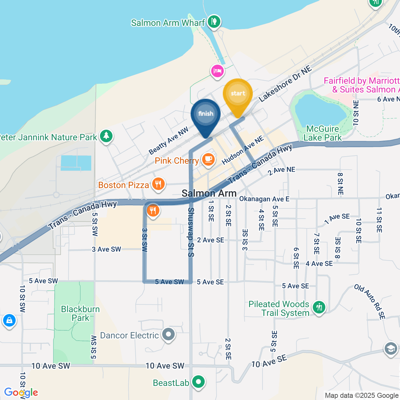 ![]() | Head north on Shuswap St N | 0.3 km3 minutes |