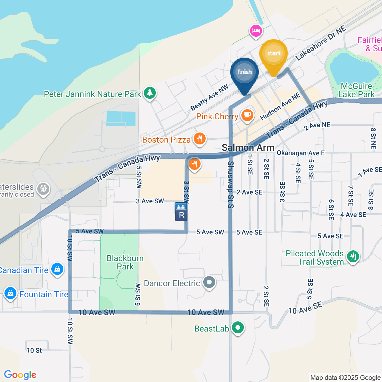 ![]() | Head south on Shuswap St S | 0.8 km9 minutes |