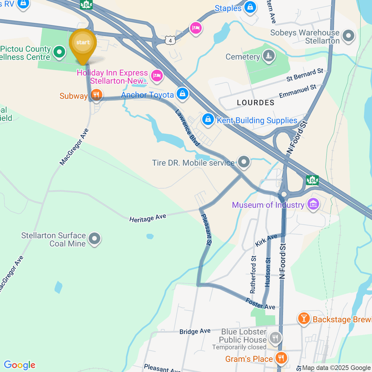 ![]() | Head north on Pleasant St | 0.5 km5 minutes |