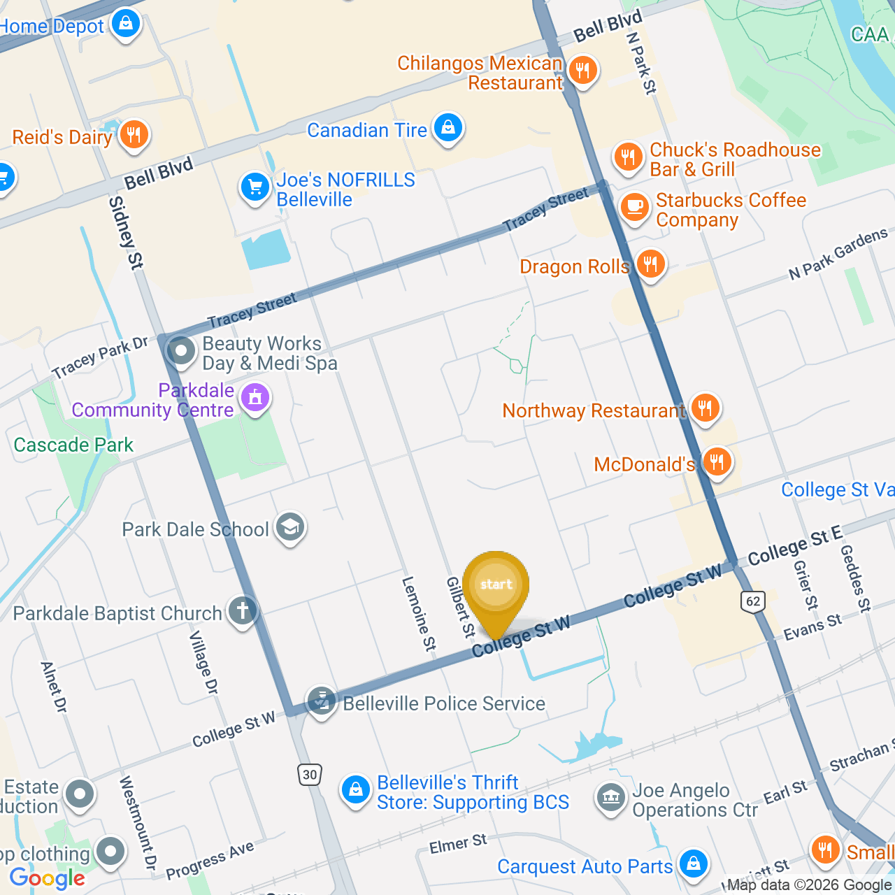 ![]() | Turn left onto N Front St/ON-62 N | 30 m< 1 minute |