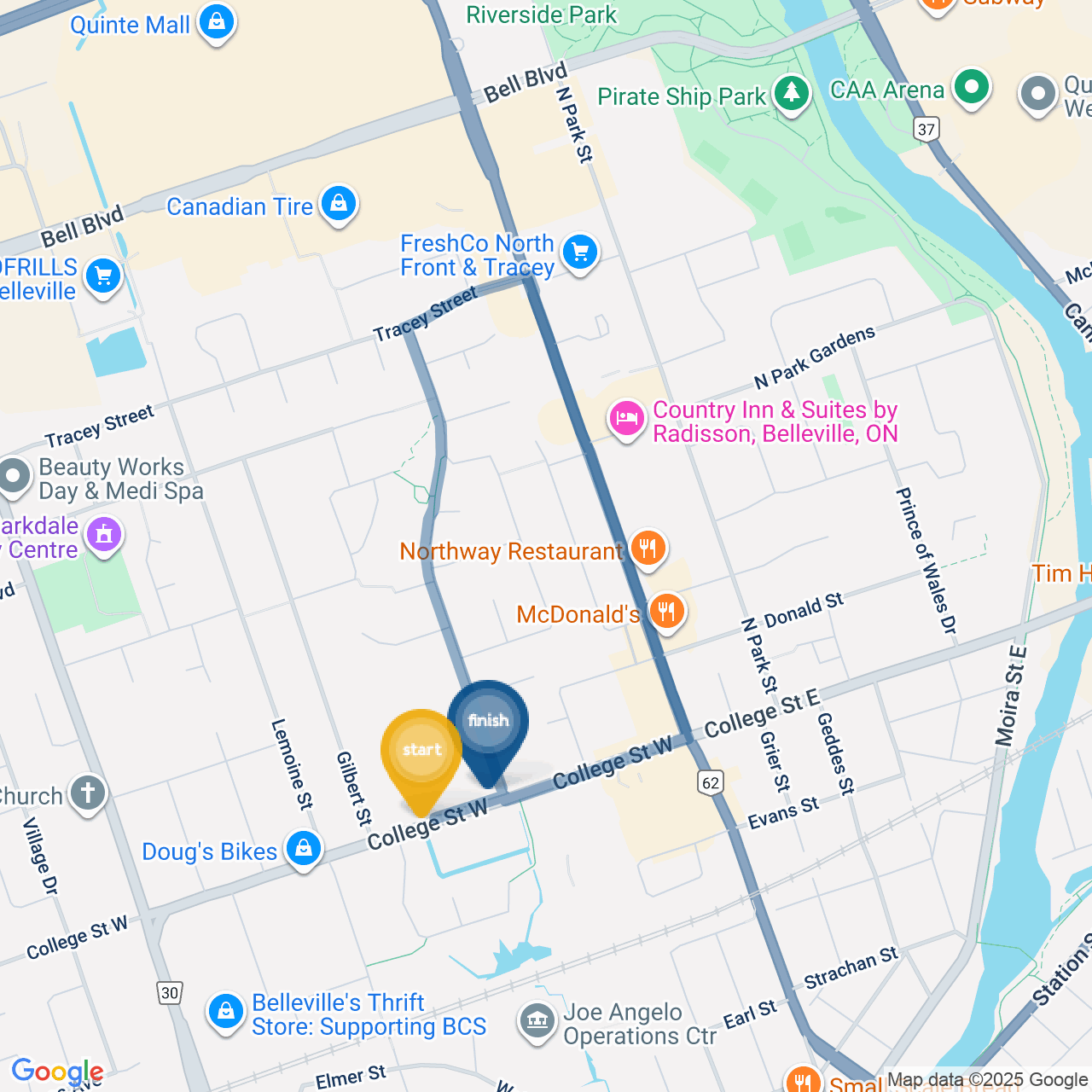 ![]() | Turn left onto N Front St/ON-62 N | 30 m< 1 minute |
