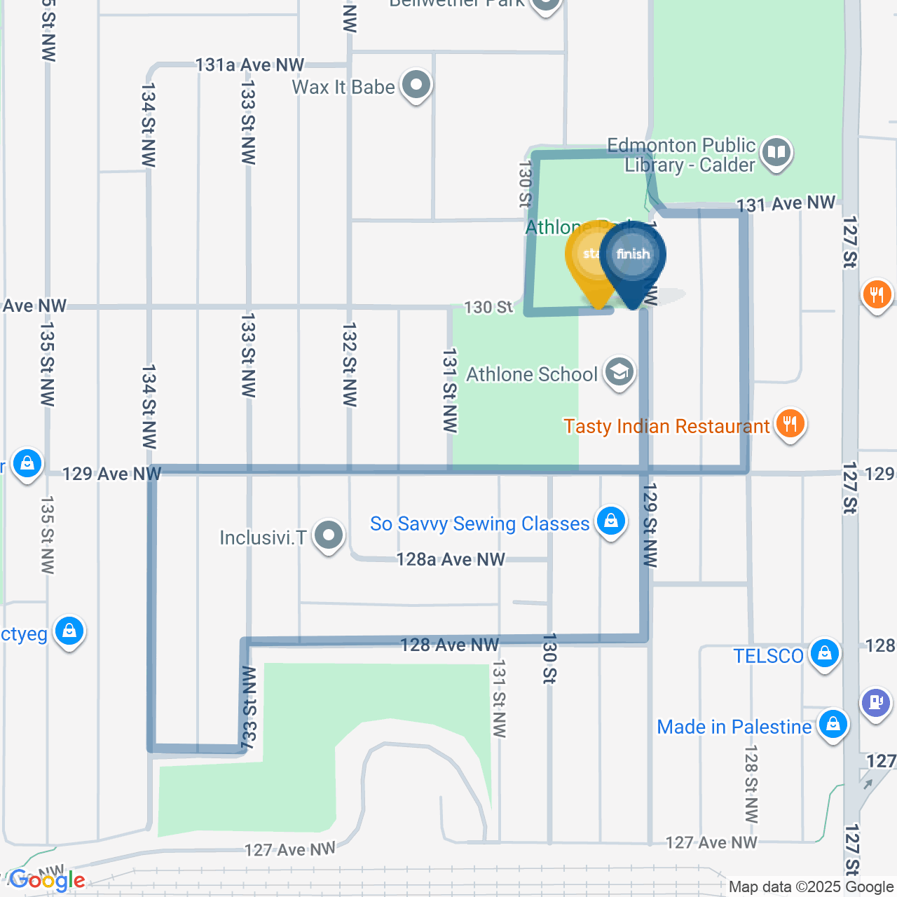 ![]() | Head north on 127a Ave NW/133 St NW | 0.1 km1 minute |