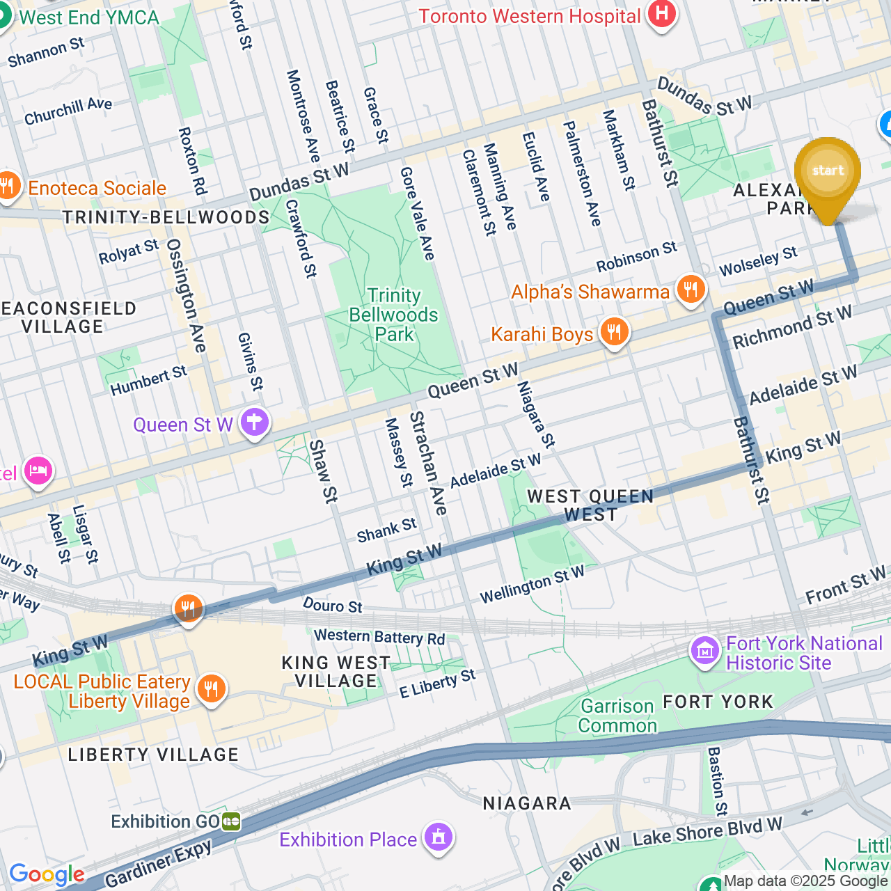 ![]() | Head south on Bathurst St | 0.2 km2 minutes |
