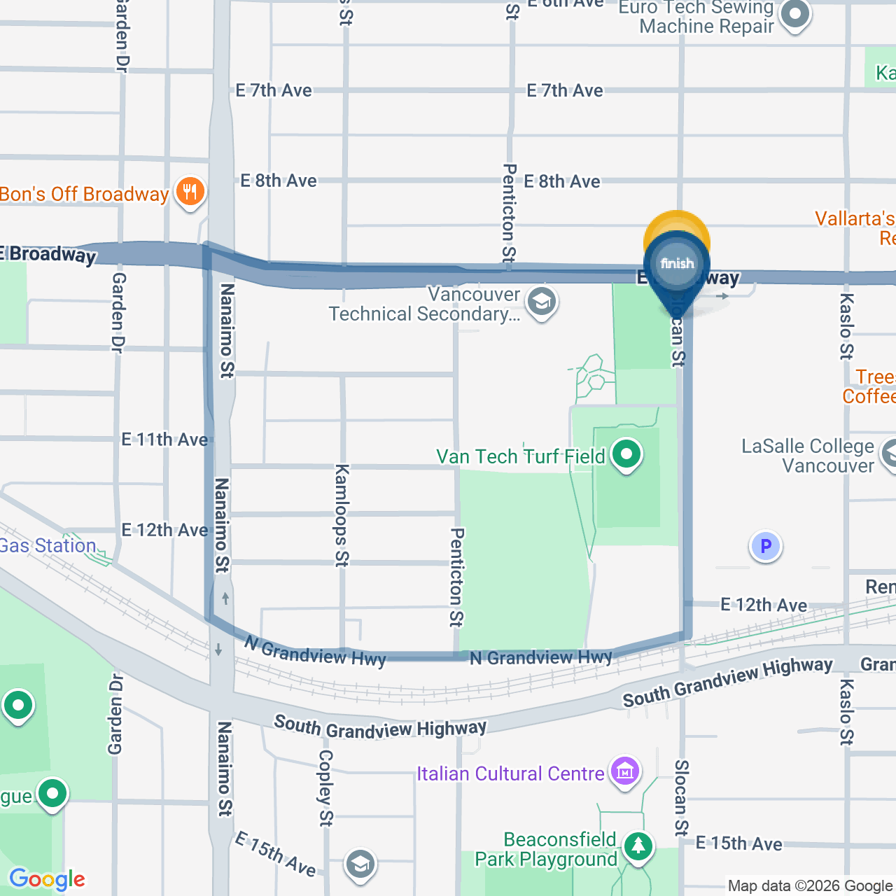 ![]() | Head west on Central Valley Greenway/N Grandview Hwy | 0.5 km6 minutes |