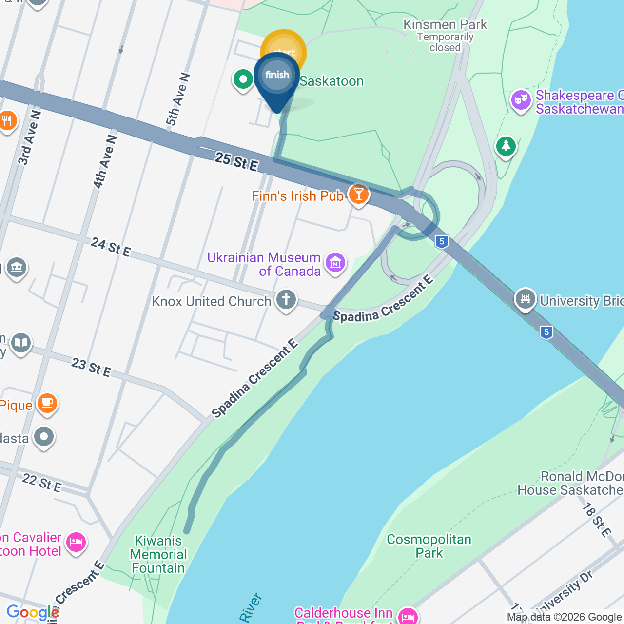 ![]() | Turn right onto Spadina Crescent E | 0.2 km2 minutes |