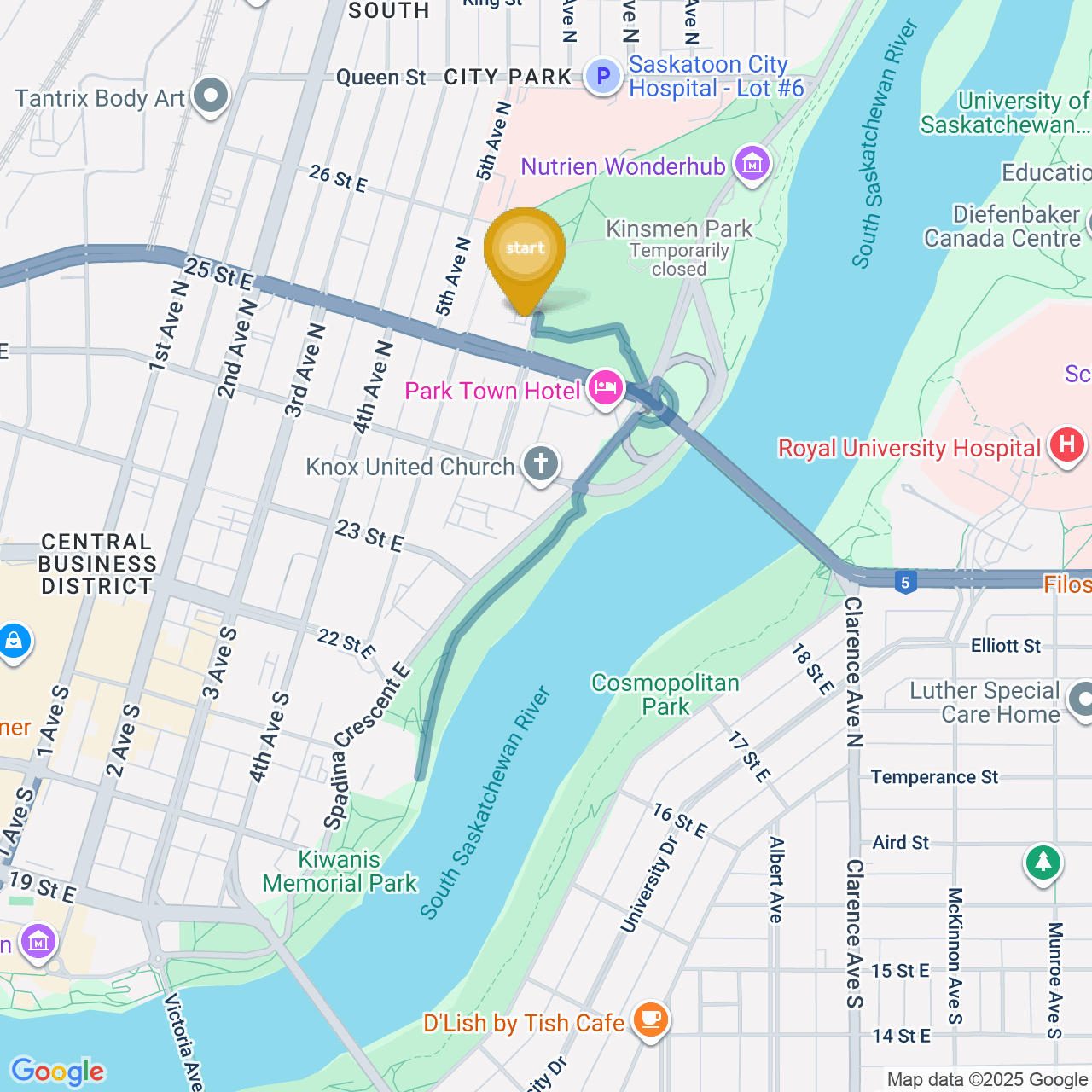 ![]() | Head northeast on Spadina Crescent E | 0.2 km2 minutes |