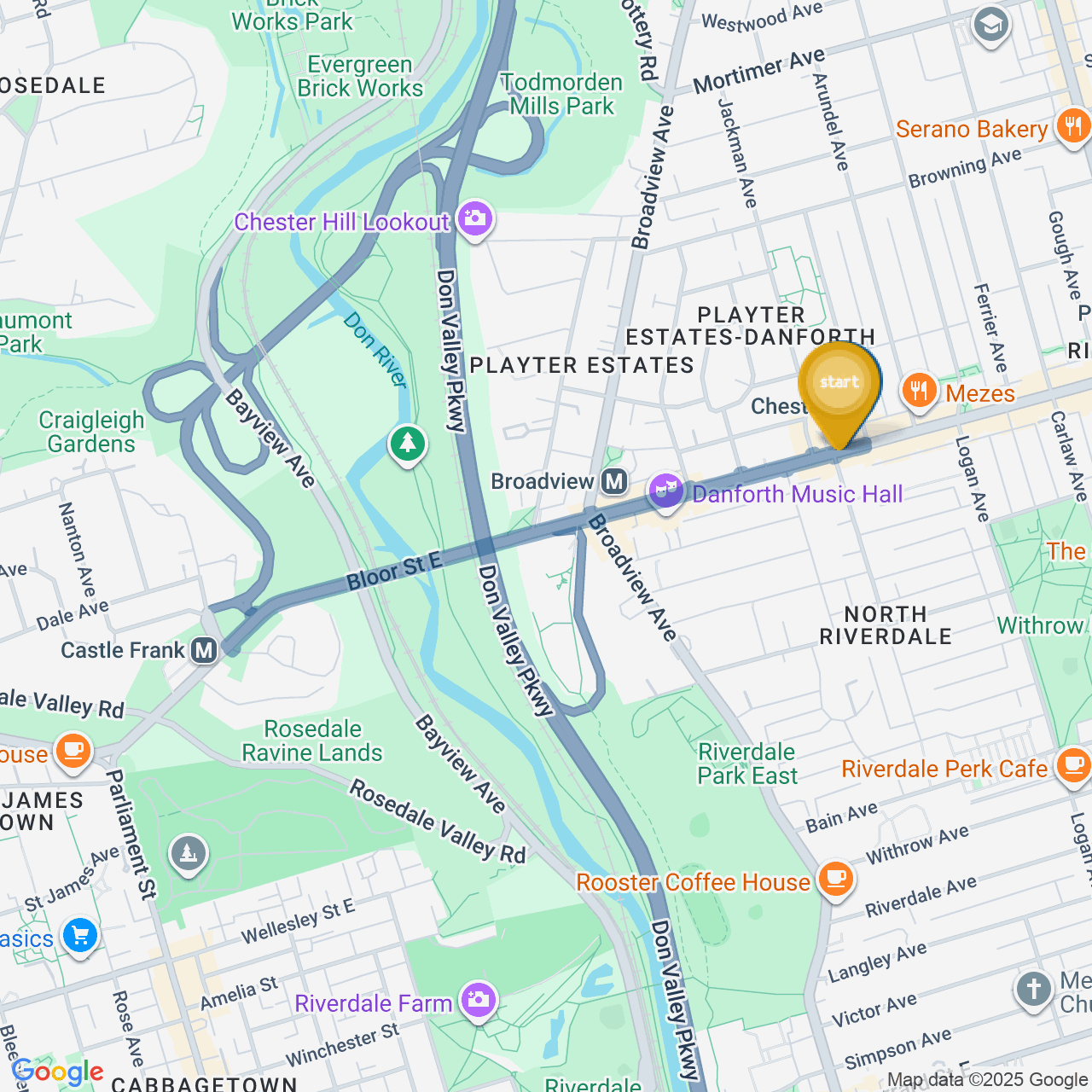 ![]() | Turn left onto Danforth Ave | 0.1 km1 minute |