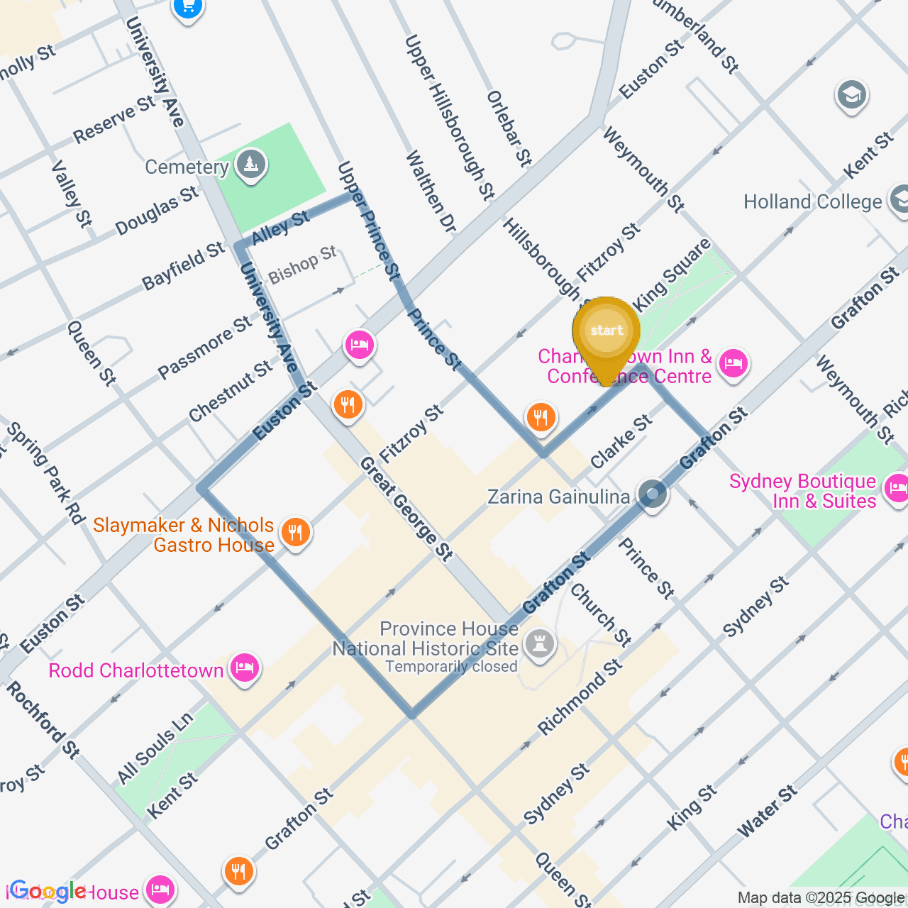 Head southeast on Upper Prince St