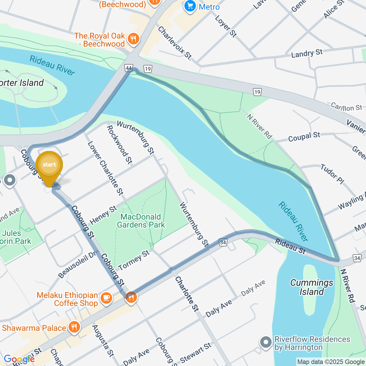 ![]() | Head west on Rideau St/Ottawa 34 | 0.4 km4 minutes |