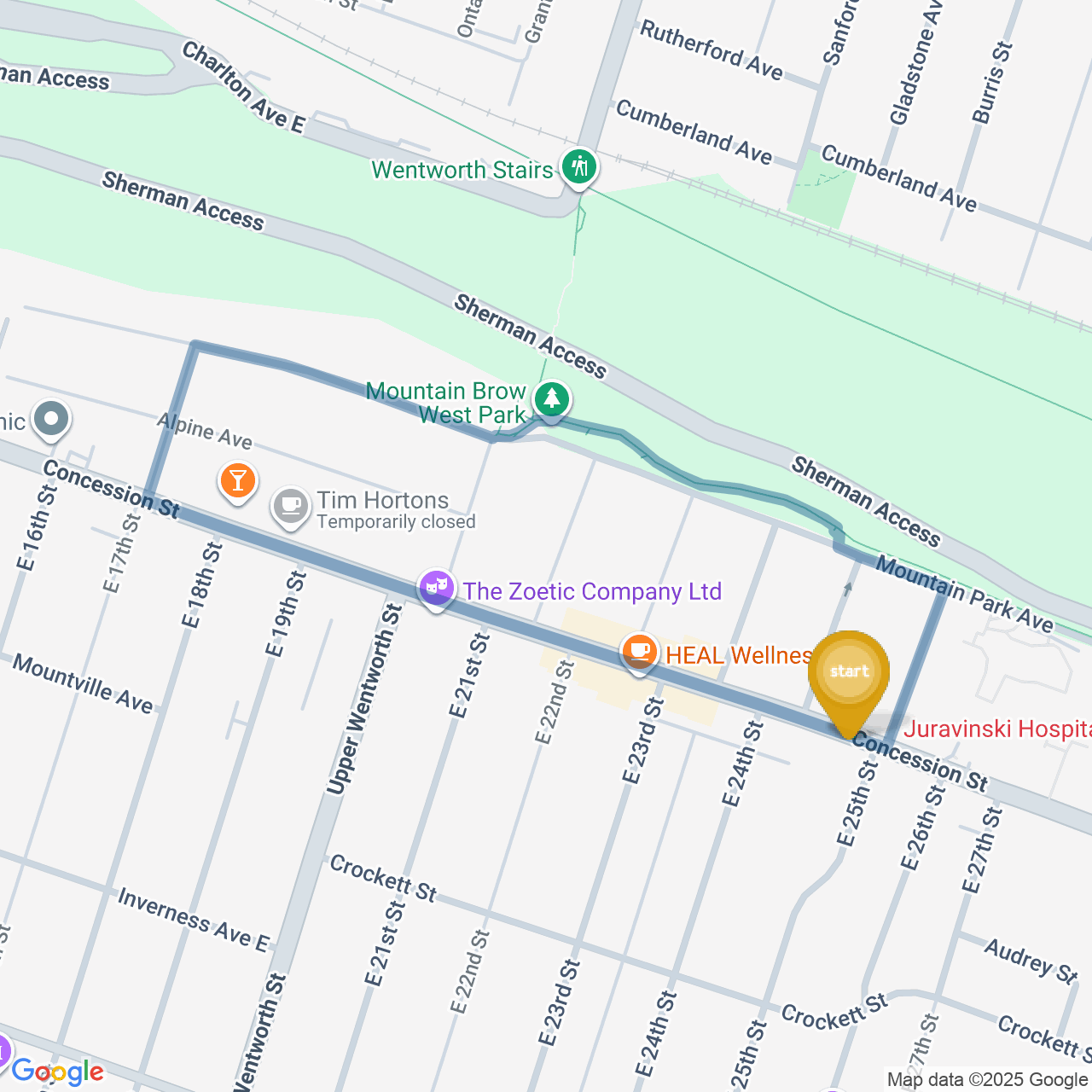 ![]() | Head east on Mountain Park Ave | 0.3 km4 minutes |