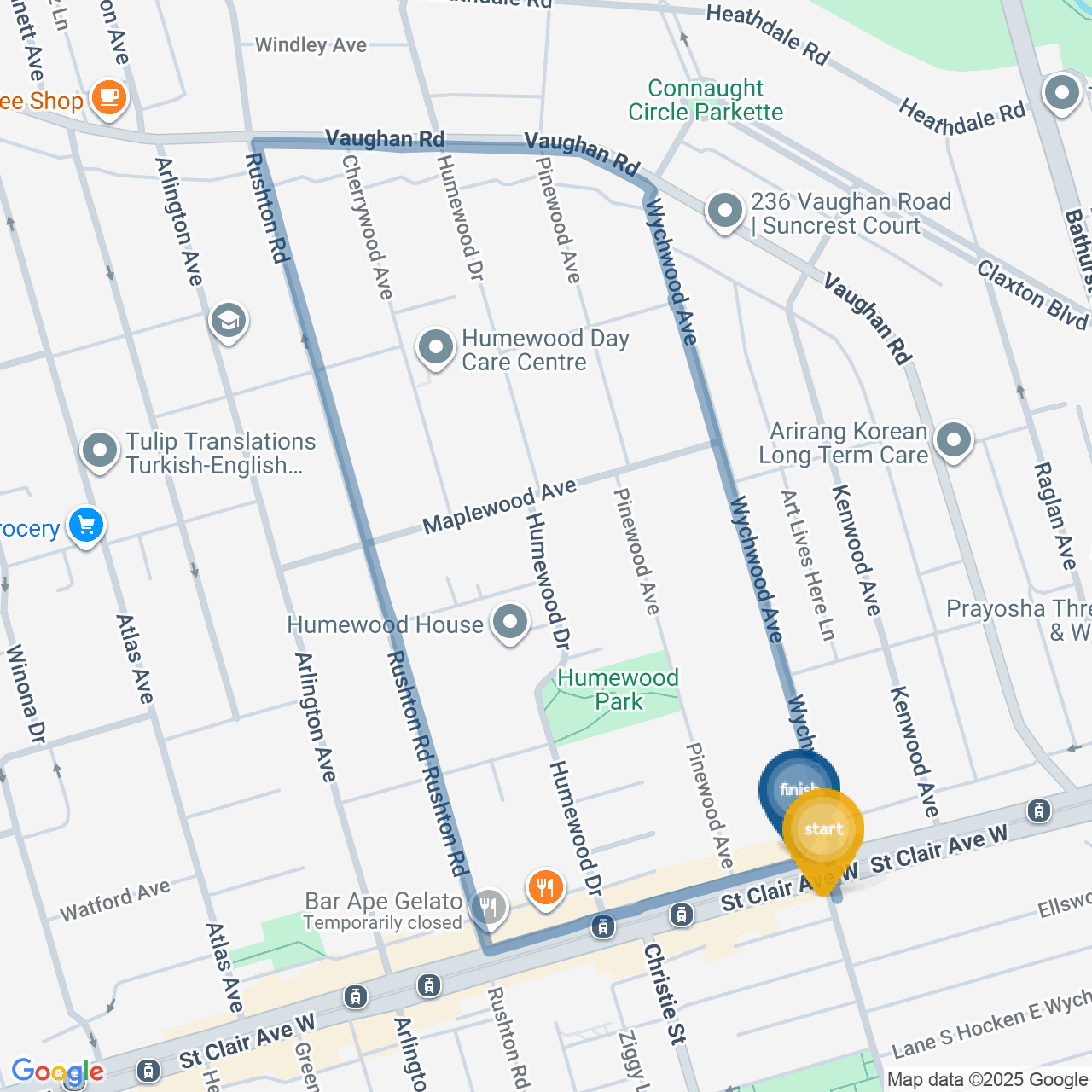 Head east on St Clair Ave W