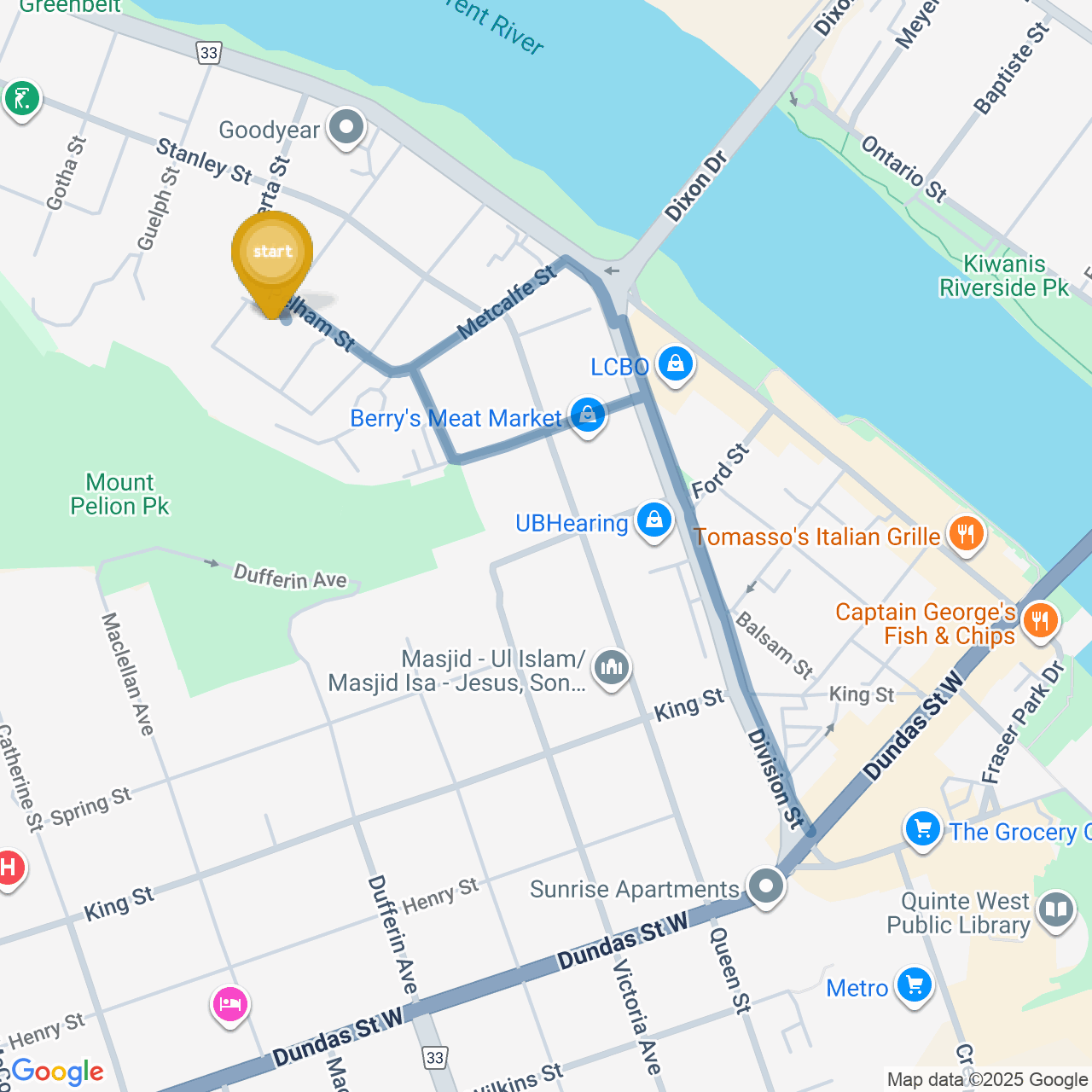 ![]() | Head northeast on Metcalfe St | 0.2 km2 minutes |