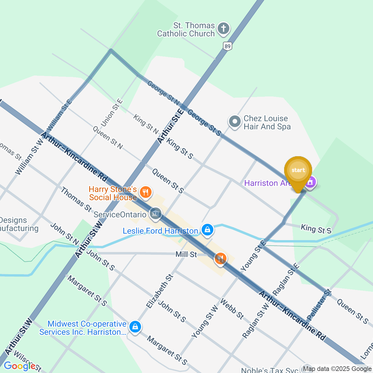 ![]() | Head northwest on Arthur–Kincardine Rd/Elora St N/ON-9 | 0.2 km2 minutes |