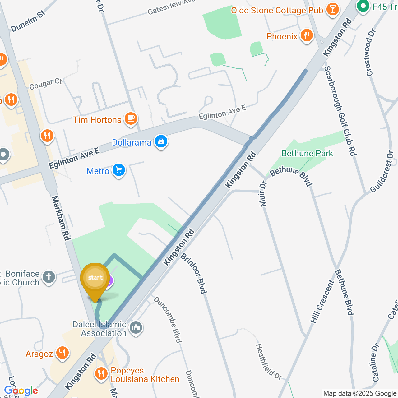 ![]() | Head southwest on Kingston Rd | 0.5 km5 minutes |