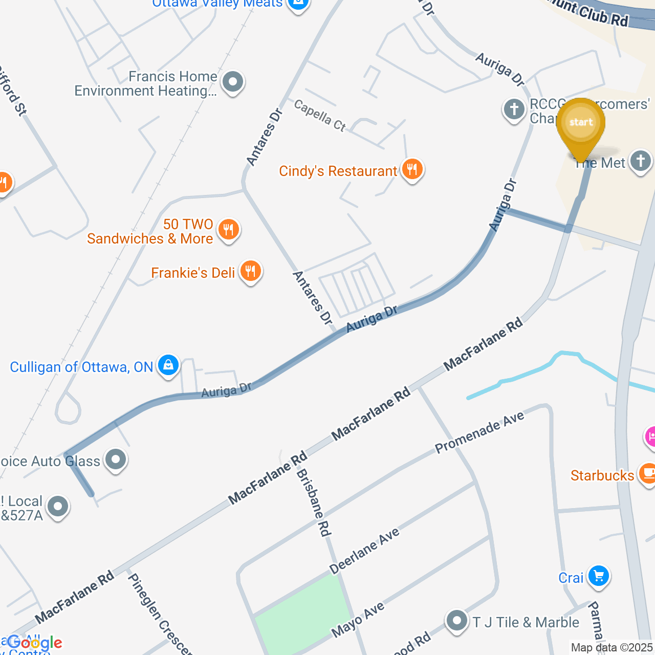 ![]() | Turn left onto Auriga Dr | 0.1 km1 minute |