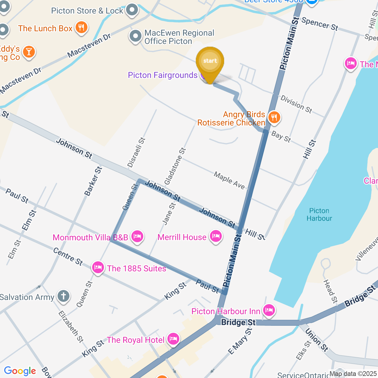 ![]() | Turn right onto Picton Main St/County Rd 49 | 0.1 km1 minute |
