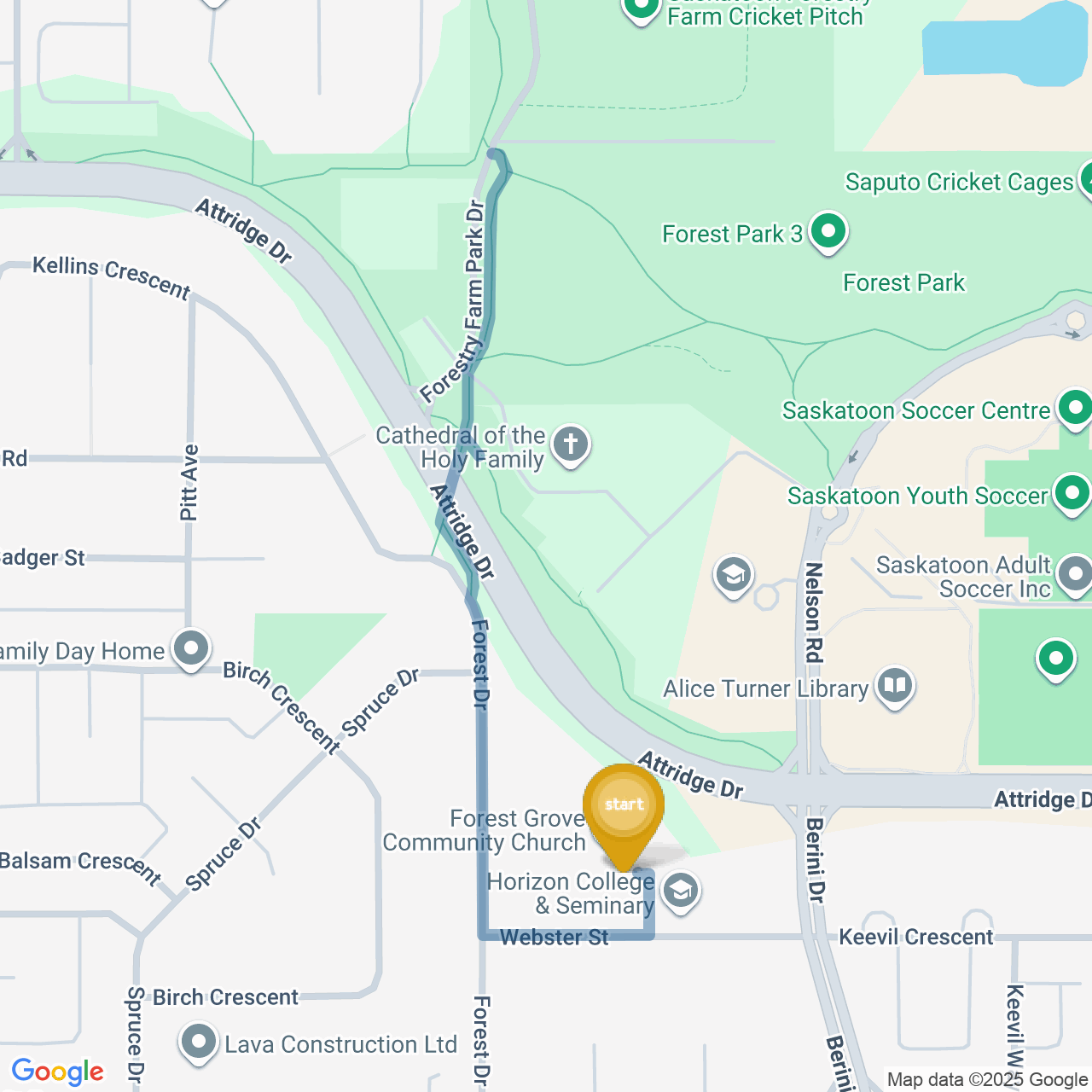 ![]() | Head north on Forest Dr | 0.3 km3 minutes |