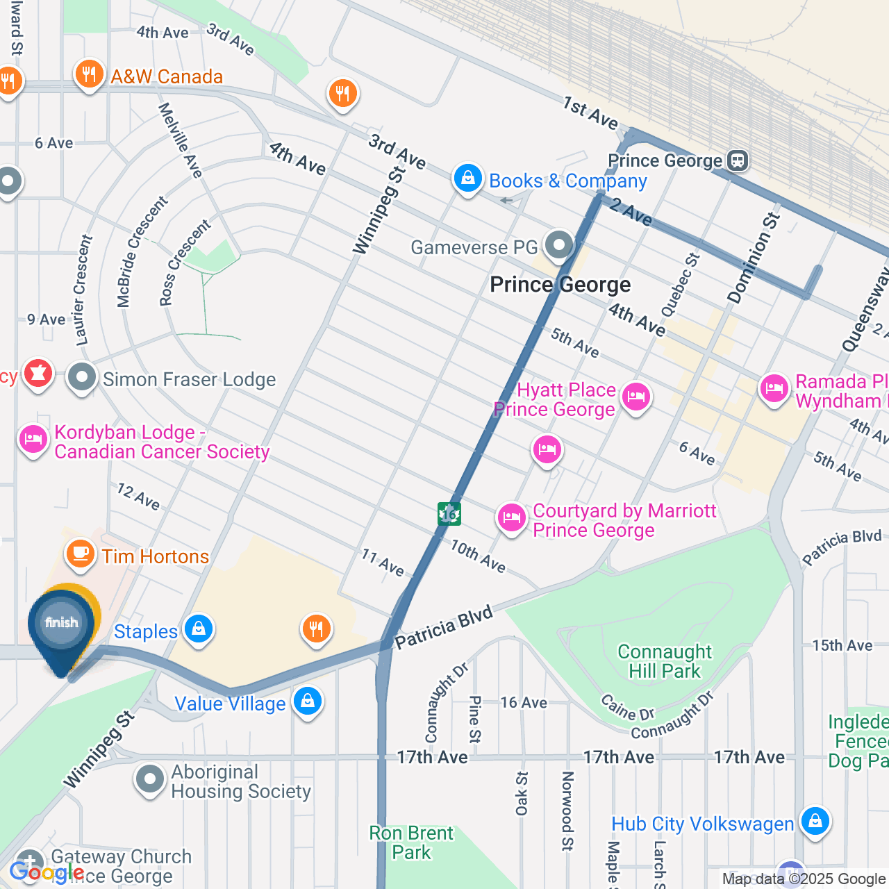 ![]() | Head northeast on Victoria St/Yellowhead Hwy E/BC-16 E | 0.4 km4 minutes |