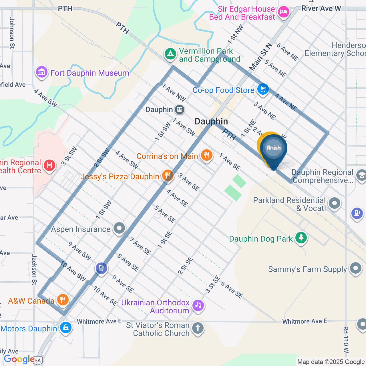 ![]() | Head southeast on 2 Ave NW/PTH/MB-10A N/MB-5A W | 0.2 km1 minute |
