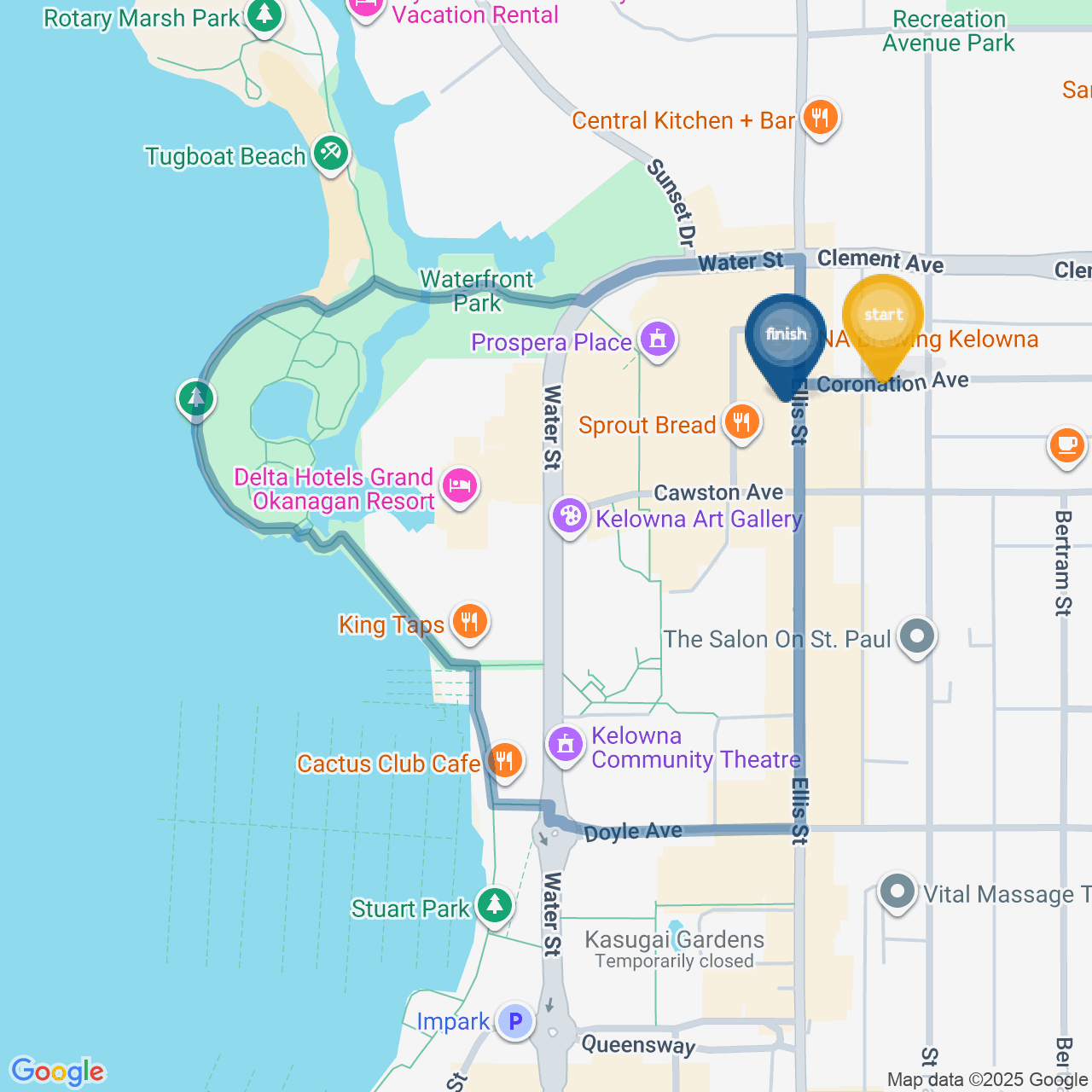 ![]() | Head southwest on Waterfront Prom | 0.7 km8 minutes |