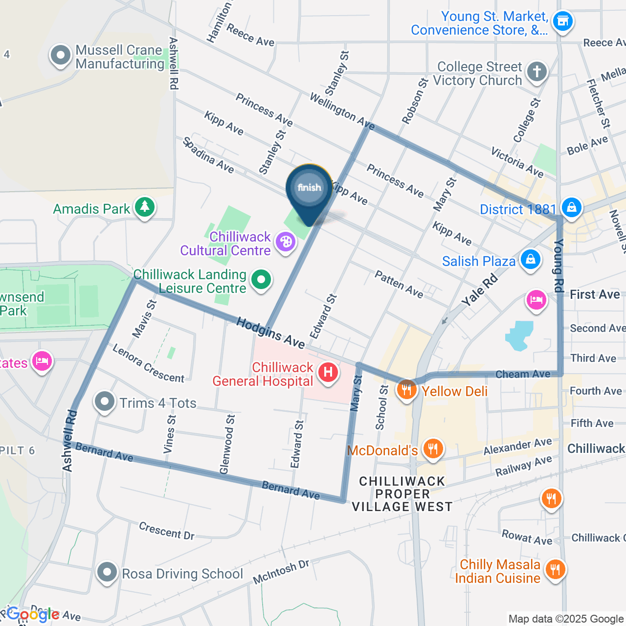 ![]() | Head southwest on Cheam Ave/Hodgins Ave | 80 m< 1 minute |