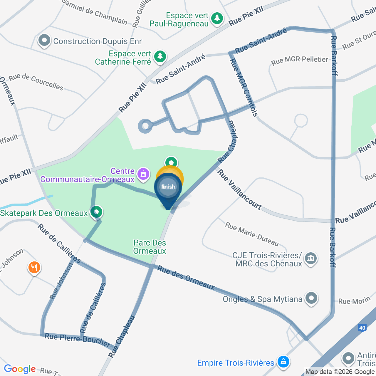 ![]() | Head west on Rue des Ormeaux | 0.4 km5 minutes |