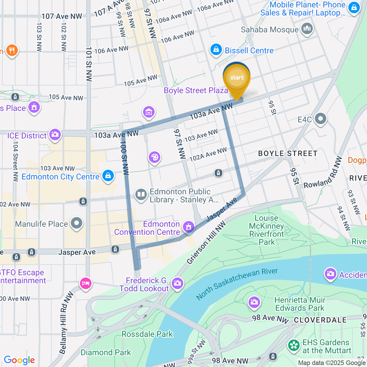 ![]() | Head west on 103a Ave NW | 0.2 km2 minutes |
