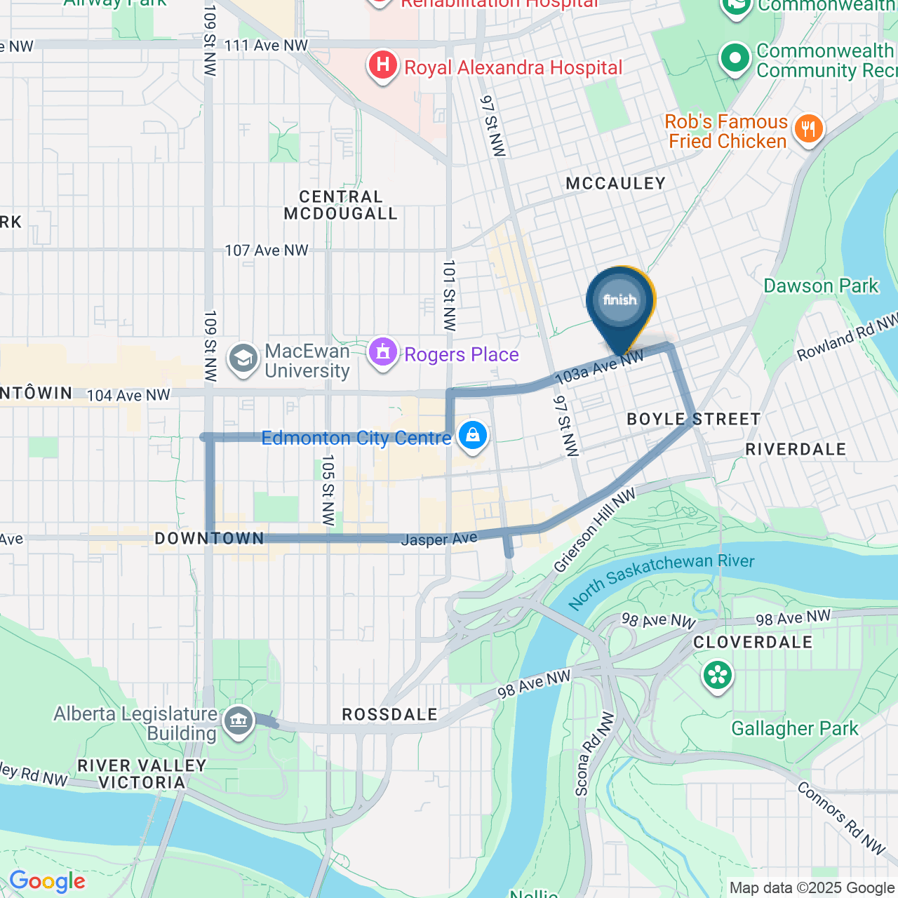 ![]() | Turn right onto 103a Ave NW | 0.1 km1 minute |