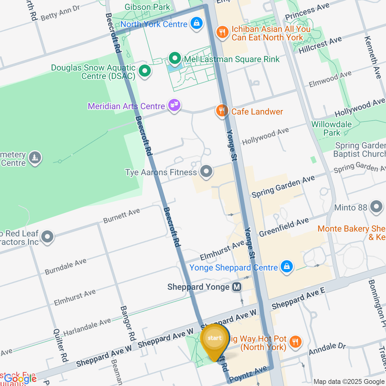 ![]() | Turn right onto Yonge St | 40 m< 1 minute |