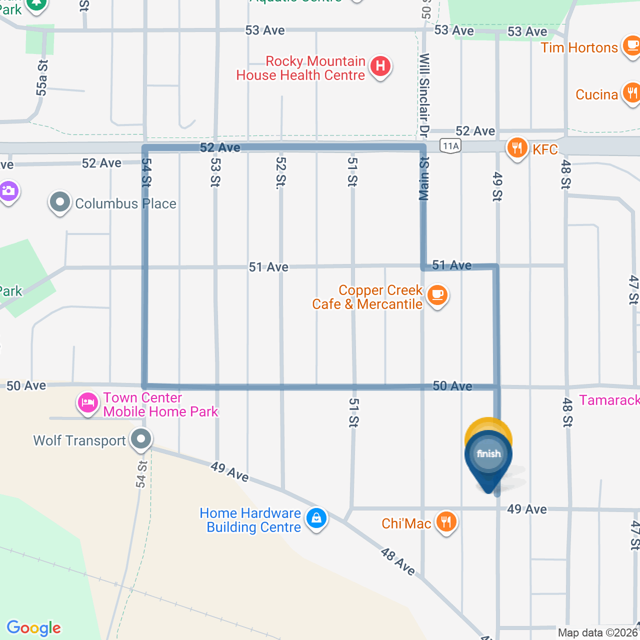 ![]() | Head west on 52 Ave/AB-11A W | 0.1 km1 minute |