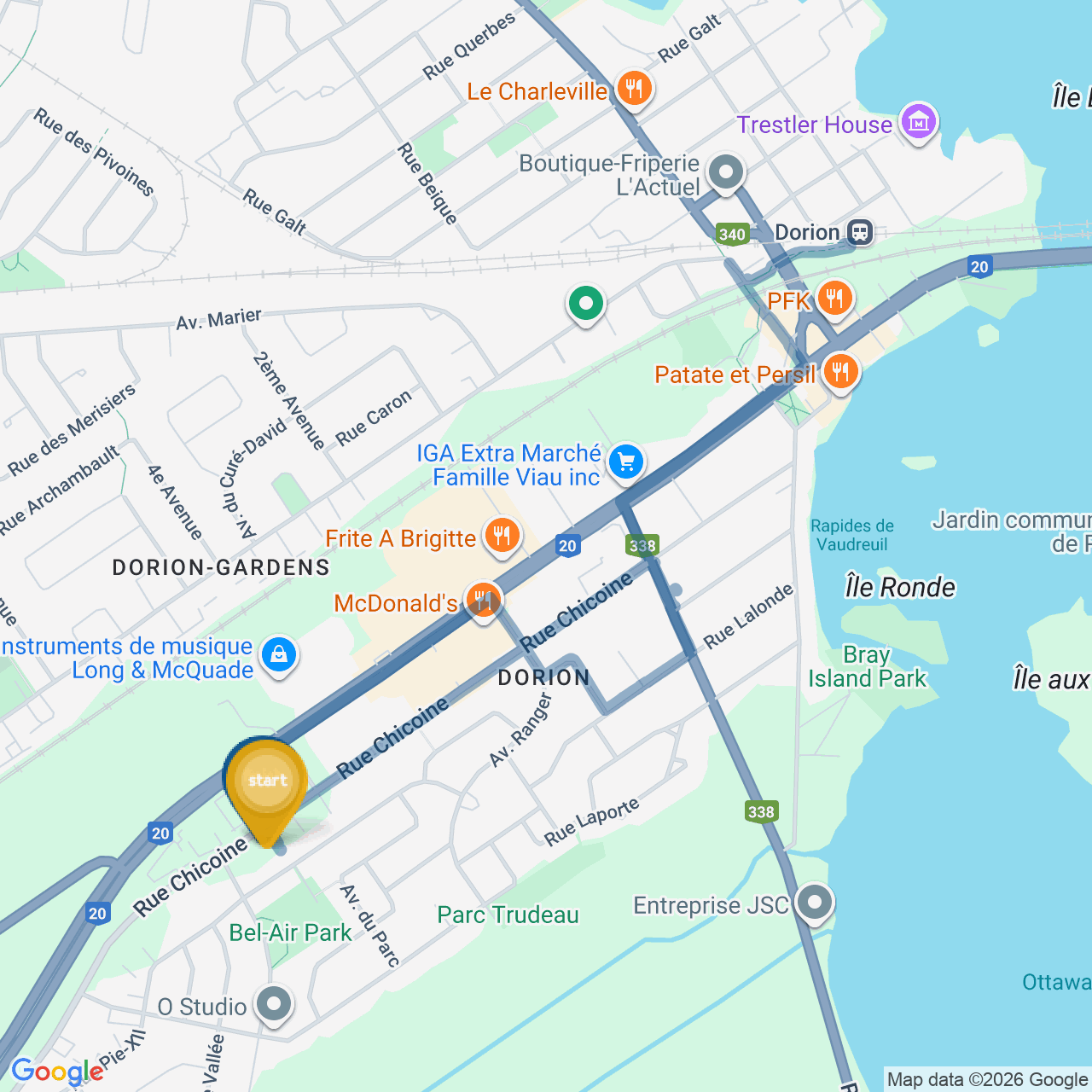 ![]() | Head northeast on Rue Chicoine | 0.4 km4 minutes |