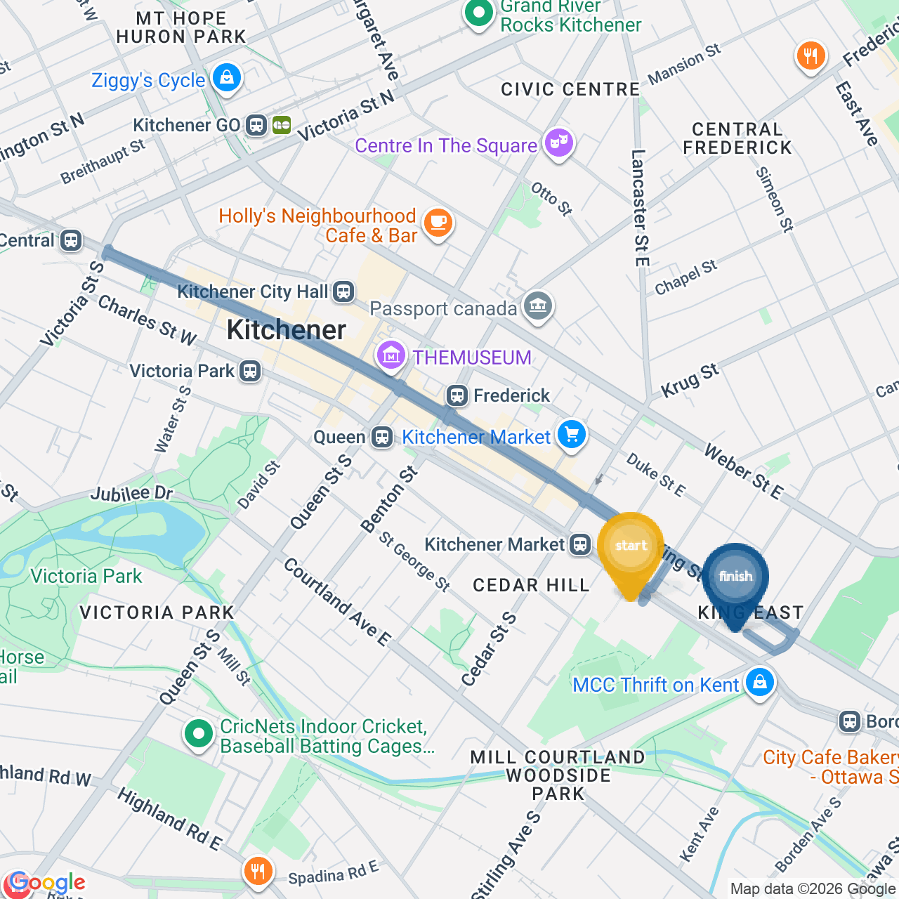 ![]() | Turn left onto King St E | 0.2 km2 minutes |