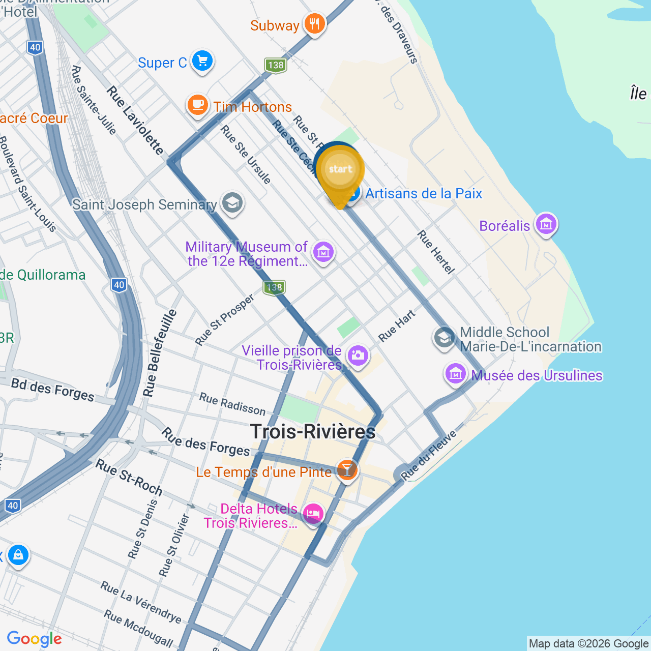 ![]() | Head northwest on Rue des Casernes/Terr. Turcotte | 0.2 km1 minute |